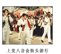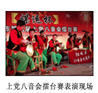 在山西省东南部晋城市六县(市区)广为流传。八音,即我国古代民族乐器的统称,指金、石、土、革、丝、木、匏、竹八类;八音会是民间组织的音乐班子,主要使用鼓、锣、钹、旋、笙、箫、笛、管等八种乐器。故名八音会。上党八音会的音乐构成要素一是宫廷音乐,而是庙堂音乐,三是戏曲音乐,四是民间小调。其艺术特色大致有三:一是吹打并重,文武相接;二是声情并茂,演奏肩背;三是艺术容量大,本体特色强......