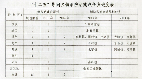 5人的标准进行征招专职队消防员。要严格按照山西省消防总队关于《进一步加强全省公安消防部队战训工作的决定》(武晋消党〔2009〕46号)文件精神,市消防支队要按照不少于20人,城区、高平、阳城、沁水按照不少于8人,泽州、陵川、开发区、北石店按照不少于6人的标准招录合同制消防文员。上述工作要在两年内征招完毕,2015年上半年,省政府、市政府将对各地招录情况及政府专职队站建设情况进行全面验收。