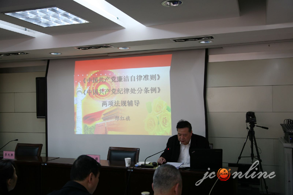 邵红旗同志结合实际案例为全体审计干部职工做了关于《中国共产党廉洁自律准则》、《中国共产党纪律处分条例》两项法规辅导。教育党员干部要严格遵守“四个必须”、“八条规范”,自觉培养高尚道德情操,努力弘扬中华民族传统美德,廉洁自律,接受监督,永葆党的先进性和纯洁性。
