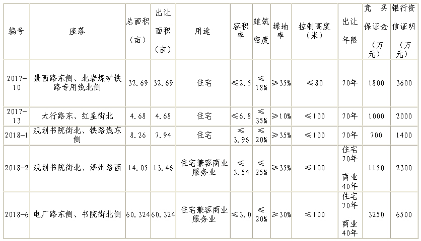 经晋城市人民政府批准,晋城市国土资源局决定公开出让五宗国有建设用地使用权,现将有关事项公告如下: