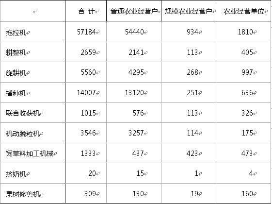 表2 主要农业机械数量