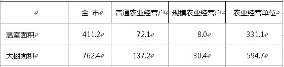 2016年末,全市温室占地面积411.2公顷,大棚占地面积762.4公顷。
