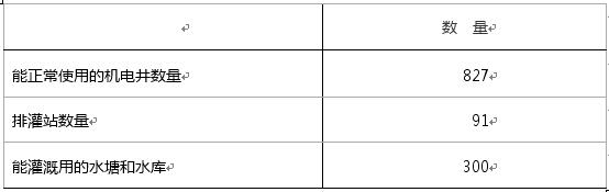 2016年末,全市调查村中能够正常使用的机电井数量827眼,排灌站数量91个,能够使用的灌溉用水塘和水库数量300个。