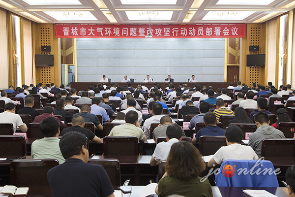 市长刘锋出席会议并讲话,市委常委、市委秘书长王晋峰主持会议,副市长王宏微宣读了《晋城市大气环境问题整改攻坚行动方案》。