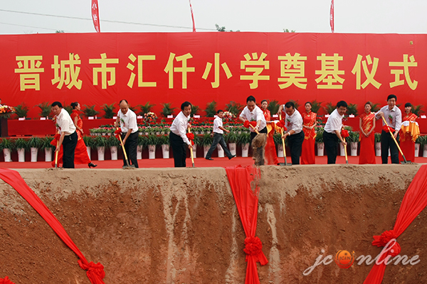 晋城市汇仟小学工程是今年市政府为解决上学难和缓解市区班容量过大,进一步优化教育资源而实施的一项为民办实事工程,是我市今年决定新建的4所学校中第一个开工项目。项目位于规划景西路东、汇仟小区西南,总占地47亩,计划总投资3500万元,建筑总面积1.2万平方米,为六轨制完全小学,可容纳学生1700余名,计划于2012年投入使用。该项目建成后,可以基本满足因黄华街南段改造、两河治理和前进路改造而搬迁的1万余名居民的子女上学,并将整合钟家庄办事处尧头小学、时家岭小学两所村办小学的教育资源,对进一步缓解市区学生就学压力,切实保障和改善民生具有重大的现实意义和社会效益。