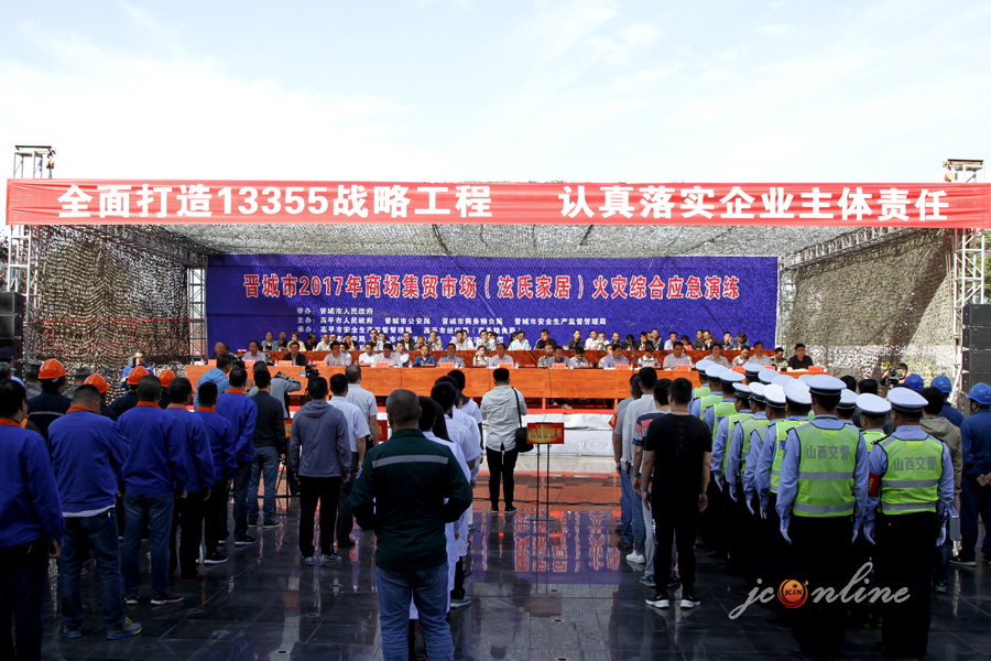 9月22日上午,我市在高平泫氏家居广场举办2017年商场集贸市场火灾综合应急演练。