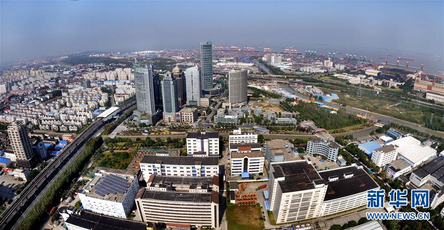 这是上海自贸区外高桥区域一景(2013年10月29日摄)。在中国改革开放40年的历程中,上海浦东开发是浓墨重彩的一笔。今天,浦东的地区生产总值已经从开发开放之初的60亿元增长到接近1万亿元,经济总量翻了160倍。 新华社记者
