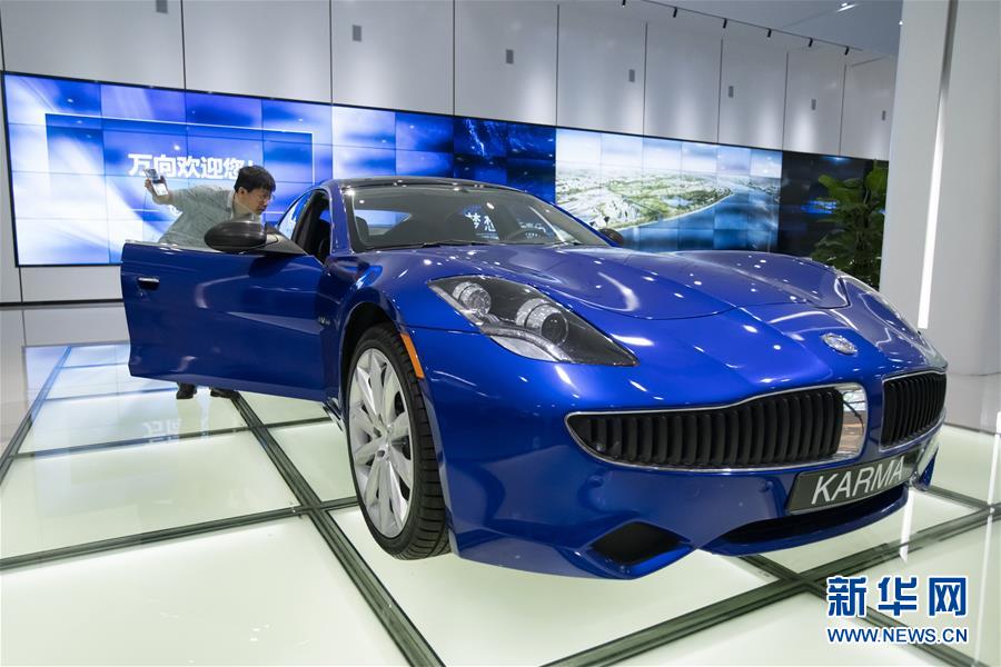2018年7月4日,一名参观者在观看万向集团旗下公司研发的、在北美地区上市的KARMA混动跑车。 新华社记者 沈伯韩