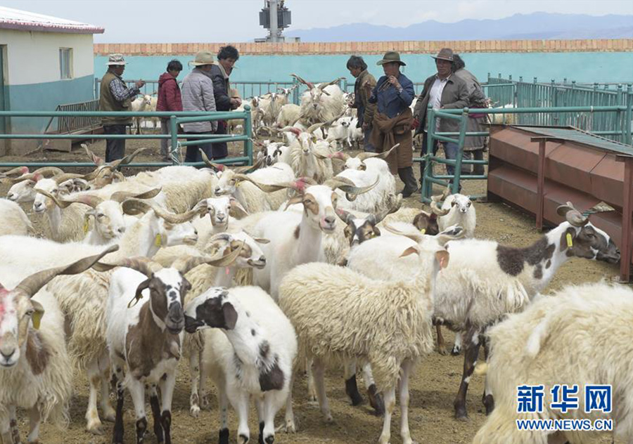 青海省泽库县拉格日村生态畜牧业专业合作社社员在清点羊群数量(6月14日摄)。新华社记者 鲁鹏 摄