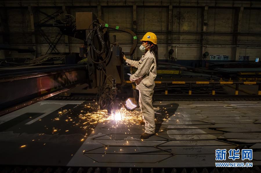 工人在南通中远海运川崎船舶工程有限公司智能化车间作业(7月6日摄)。小到牙刷、电池,大到汽车、轮船、大飞机……改革开放40年,中国制造坚持开拓,苦练内功,在与世界贸易伙伴携手共进中,逐渐融入全球贸易体系。新华社记者