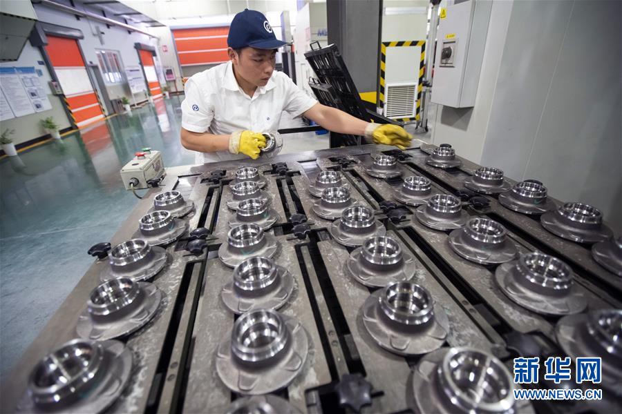 在万向钱潮智慧工厂,一名工人在上毛坯(7月4日摄)。小到牙刷、电池,大到汽车、轮船、大飞机……改革开放40年,中国制造坚持开拓,苦练内功,在与世界贸易伙伴携手共进中,逐渐融入全球贸易体系。新华社记者