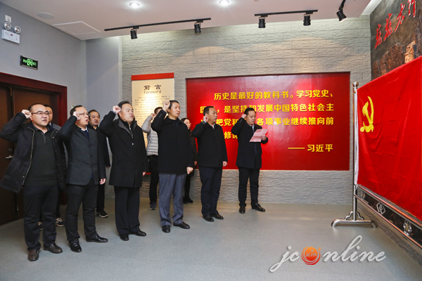 在市党史展览馆,那志茂与支部党员一起,面对党旗集体宣誓,重温了入党誓词。随后又同大家一起参观了晋城党史图片展,那志茂一边认真聆听讲解,一边驻足观看,详细了解共产党在晋城各个历史阶段发展的光辉历程。