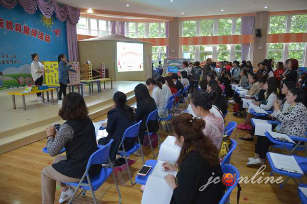 展评活动中,来自全市6县(市、区)、晋煤集团、市直幼儿园八个参赛团体,六大类玩教具,共121件作品展出,并设立自制玩教具专业评委组和大众评委组,从教育性、科学性、创新性等几个方面对每件玩教具的设计构思、取材、制作工艺及玩教具的演示讲解效果进行综合打分并适时点评。参评作品由作者本人进行现场讲解和操作演示。活动现场气氛热烈,大家纷纷表示获益良多。