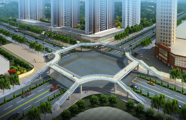 ①兰花路与新市东街交叉处人行天桥改造效果示意图