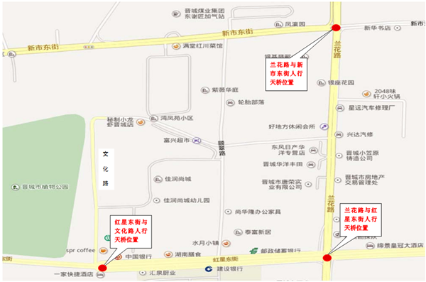兰花路、新市东街、红星东街均为富士康厂区上下班必经之路,同时红星东街是市区与客运东站的交通要道,特别是兰花北路与北环路接通后,该路段成为市区与矿务局、晋城东出口的重要枢纽之一。为了改善城市交通环境,缓解高峰期人车混杂交通状况,拟建三座人行天桥。现将规划设计方案予以公示,征询公众意见。 拟建三座人行天桥规划设计方案